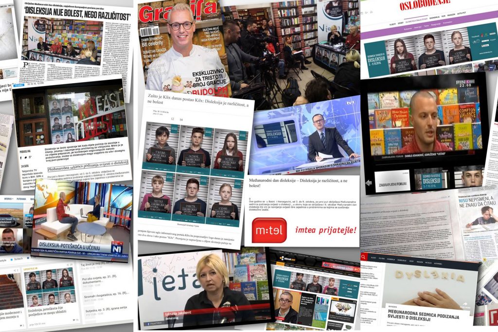 No, podrška medija oživjela je i na jedan specifičan način. Na prijedlog agencije, promjenom loga na “disleksičan način” 6. oktobra određeni mediji iskoristili su svoj utjecaj i još jednom podsjetili javnost da disleksija u BiH postoji, ali da nije bolest, nego različitost. Vodeći portal u BiH Klix je postao Kilx, a logo su promijenili i Gracija, sportsport.ba i bljesak.info. Drugačiji logo, ali isti medij i medijski sadržaj, aktivnost je kojom se iskazala empatija i podržala različitost. Isto su, na svojim oficijelnim Facebook stranicama, taj dan učinile i vodeće kompanije u BiH. Tako su se među medijima, udruženjima i kompanijama koji su se uključili u kampanju podrške i kreiranju drugačije percepcije u javnosti o disleksiji uključili: Oslobođenje, Euroblic, Glas Srpske, Faktor, Dnevni avaz, Gracija, Ljepota i zdavlje, Urban magazin, depo.ba, bljesak.info, radiosarajevo.ba, klix.ba, sportsport.ba, mi2.ba, muskiportal.com, oslobodjenje.ba, startbih.info, Fena, N1, TV1, FTV, TVSA, OBN, PINKBH, TV Hayat, Al Jazeera, Radio Federacije, Radio M, Sparkasse Bank, Eronet, Alkaloid, Opel, Gloria Line, Carlsberg, Violeta, BH Telecom, Raiffeisen BANK, UNIQA, Salveo, Sarantis, Hypo Alpe Adria Bank, Dm, Cm, Giro di Sarajevo, SCC, M:tel, Komercijalna banka, Volonterska mreža Mreža mira, Kriterion, GreenPrint, Creativo centar d.o.o., Buybook, Sarajevo Navigator.